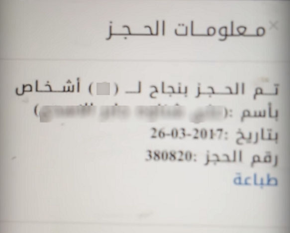 ان الوقت المخصص للحصول على حجز الكتروني هو بين الساعة ٠٥:٠٠ عصراً ولغاية الساعة ١١:٠٠ مساءاً من كل يوم.